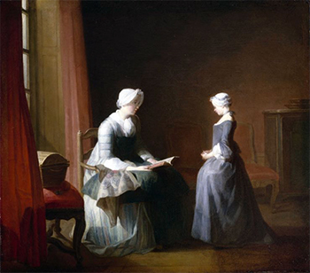 Chardin a certainement longuement étudié les intérieurs calmes et lumineux de Vermeer.