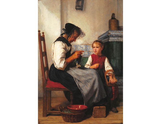 Grand-mère tricotant avec sa petite fille 1875